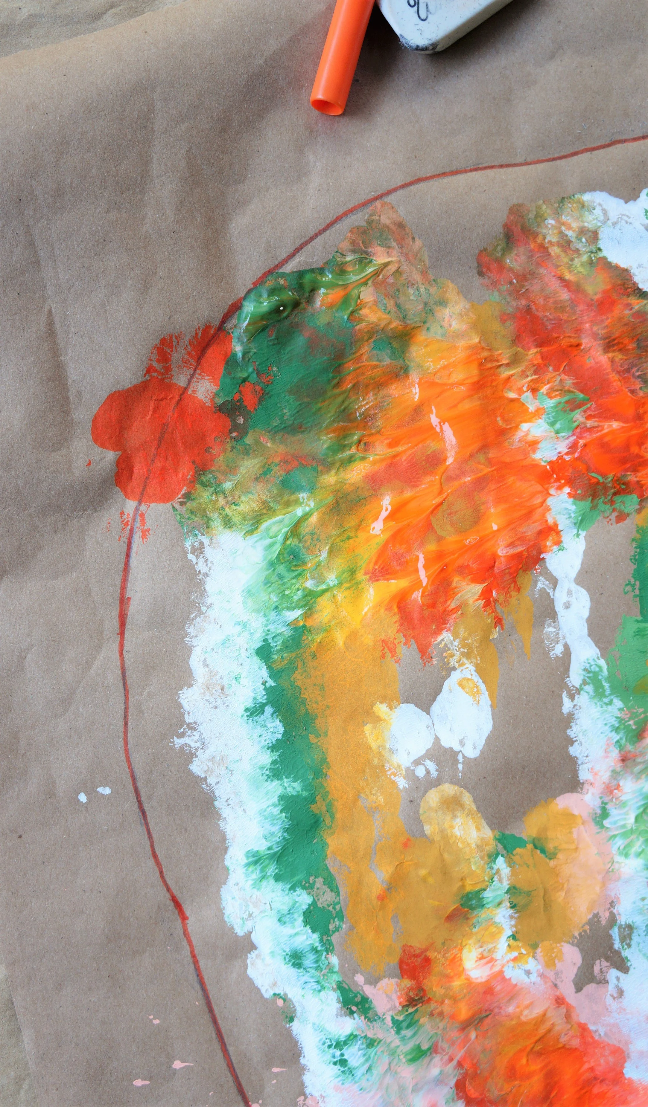 Squirt a variety of paints on the pumpkin side.