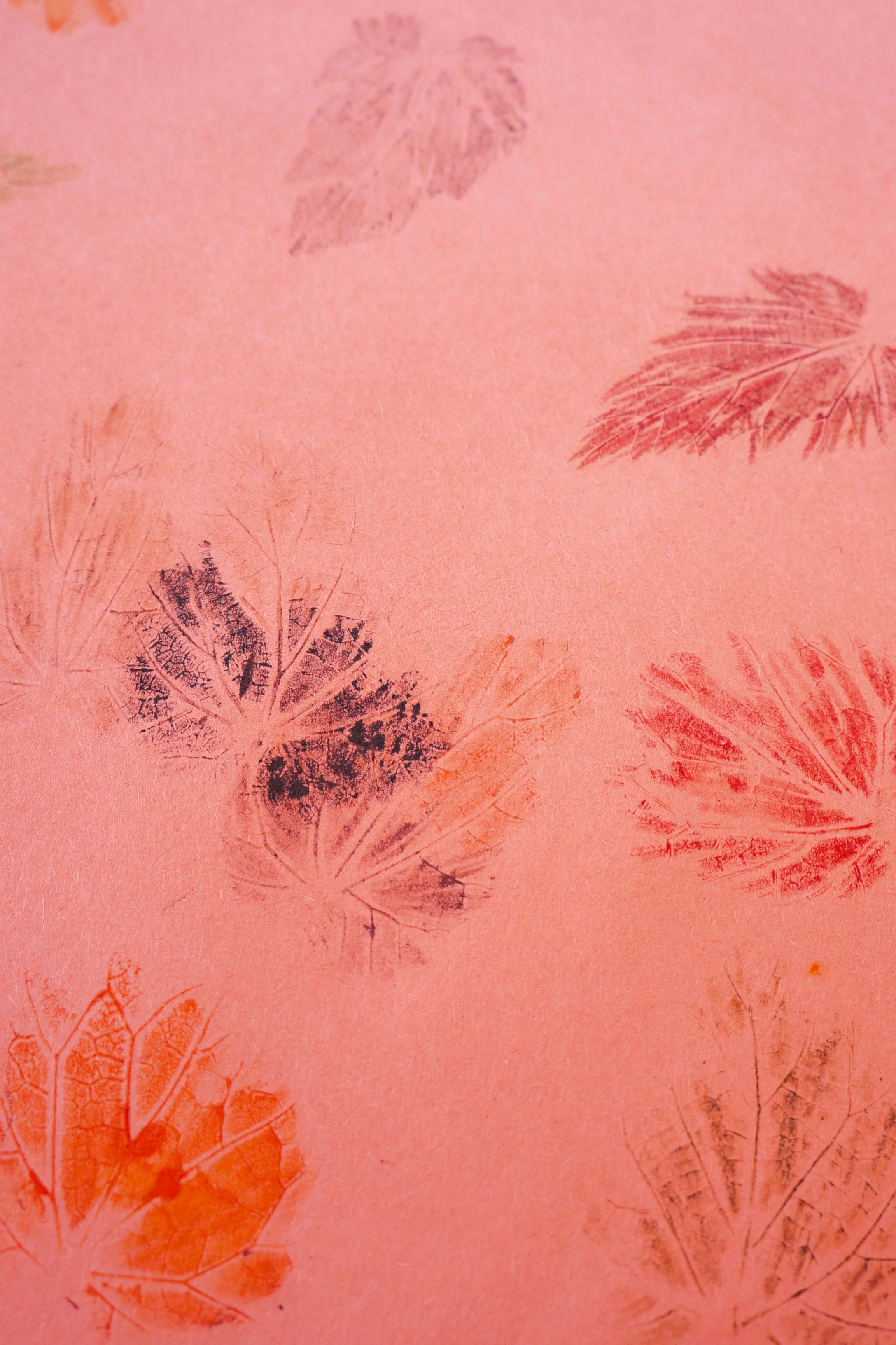 Face the leaf veins up and color with one or multiple colors, working fast so the ink doesn’t dry.