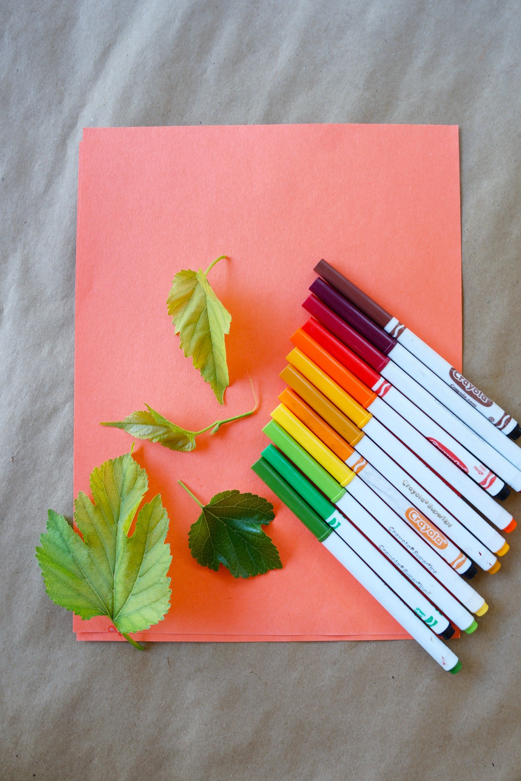 We picked lots of pliable leaves from our trees and used fall colored markers for our Fall Leaf Prints.