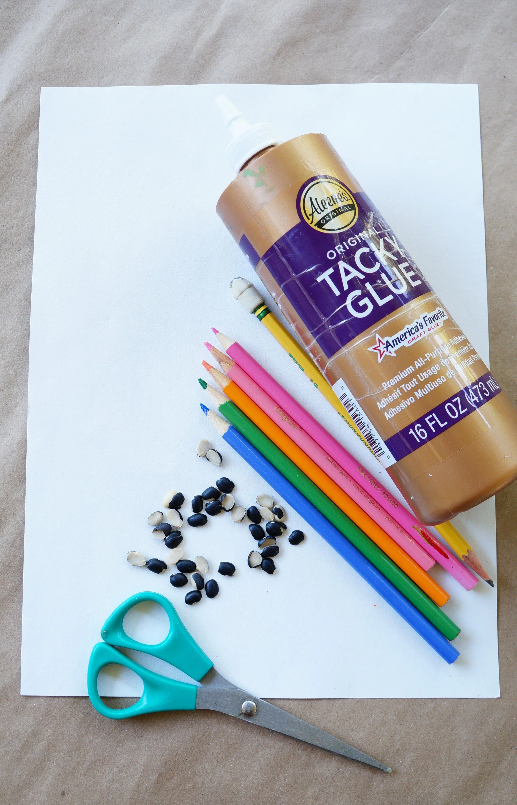 Add glue to the spotted area and fill in with black bean halves or other items (different bean, black rice, quinoa).