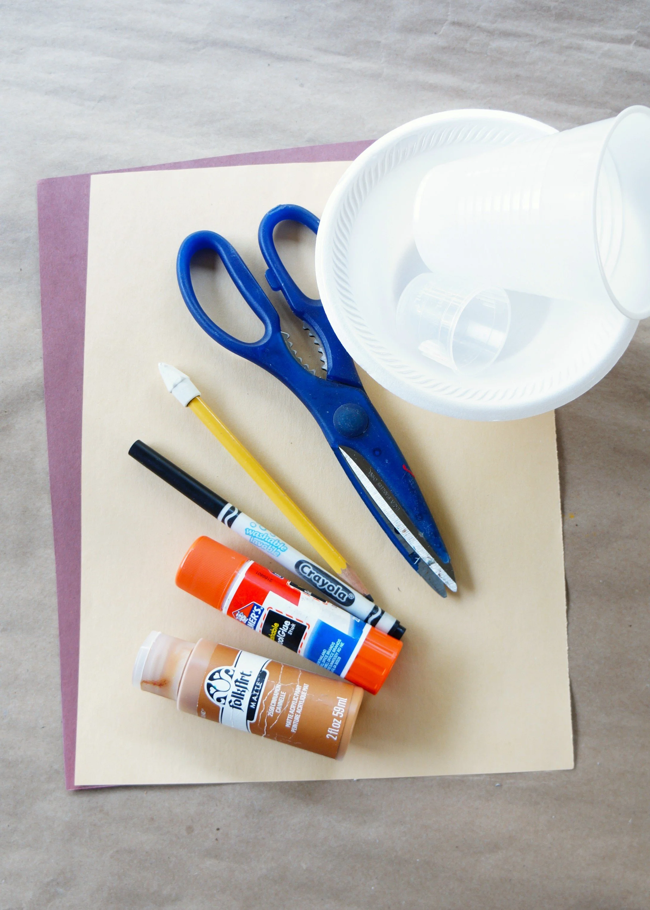 Turn your dark brown paper horizontally, fold it in half, draw a wide dome, and cut it out. Set aside the two pieces and the scraps.