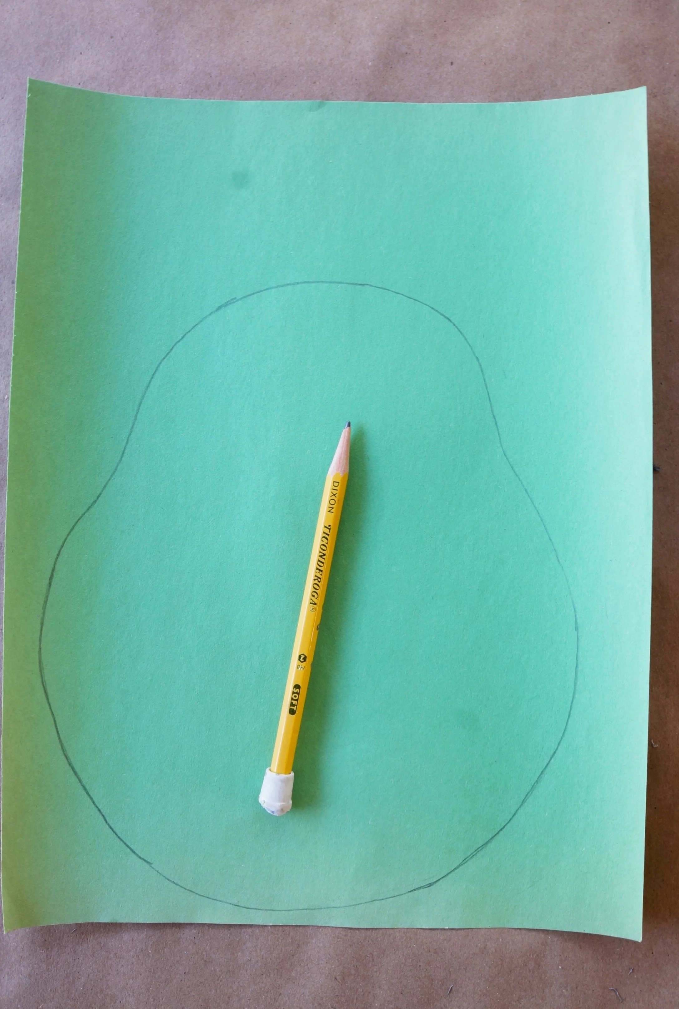 Place the pear shape over the orange paper and trace the bottom 1/3 section, creating a moon, then cut it out.