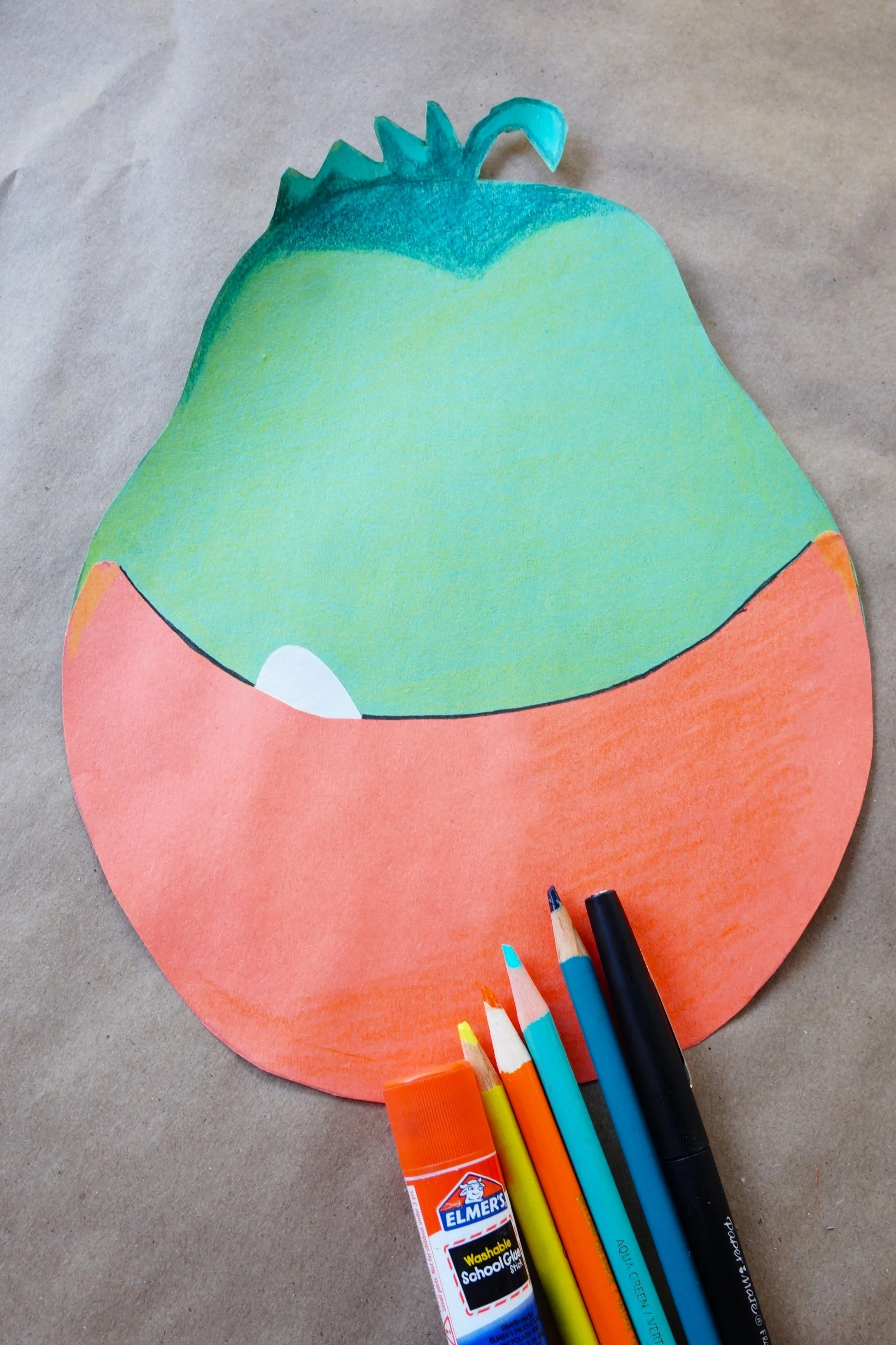 This week’s The Bad Guys 2 Piranha Face is made with a pear shape, a moon, a comma, and a few colored pencils.