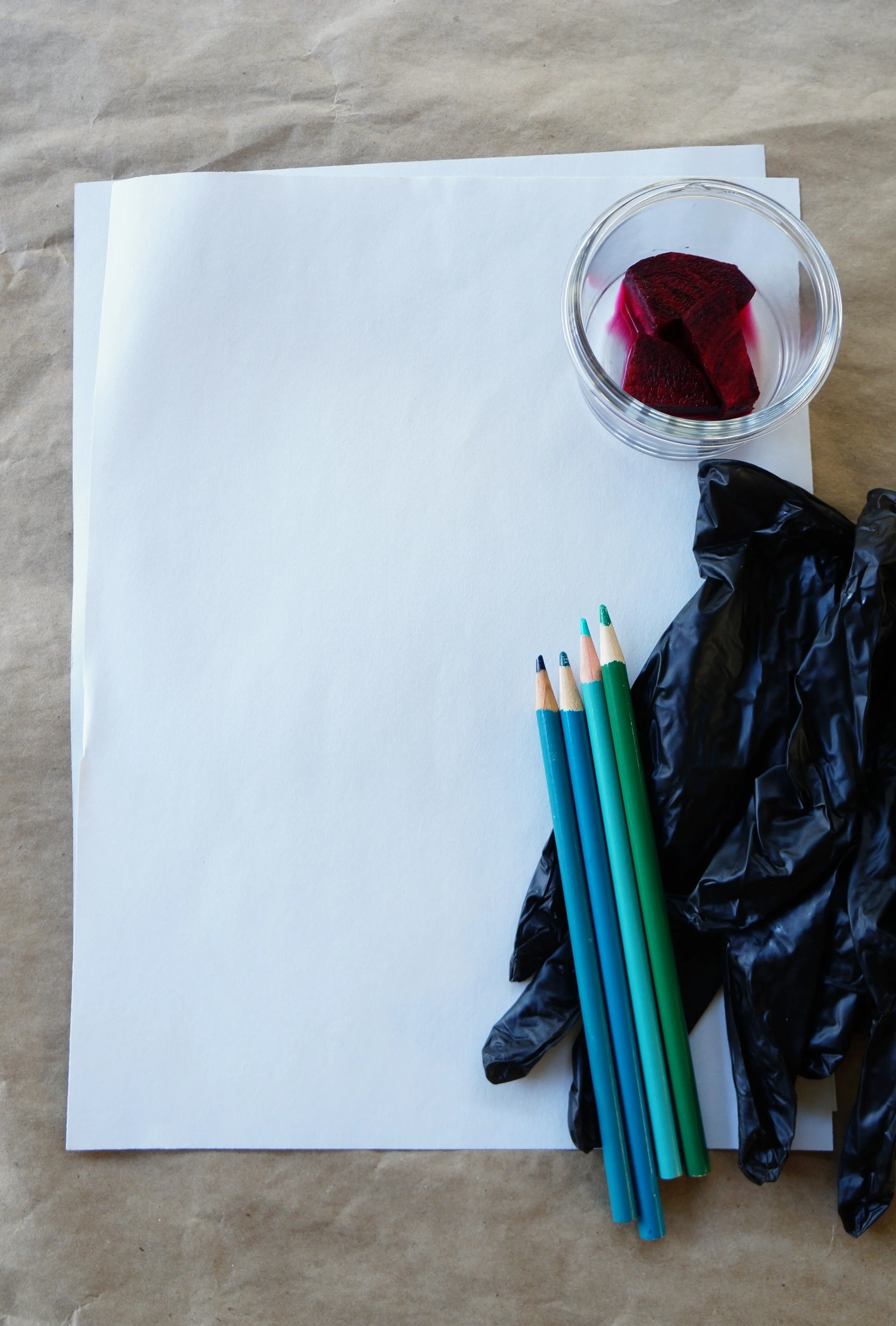 Press your beet onto the paper, repeat facing the same direction, and in a circular shape. If the beet begins to dry out, press it into the water.